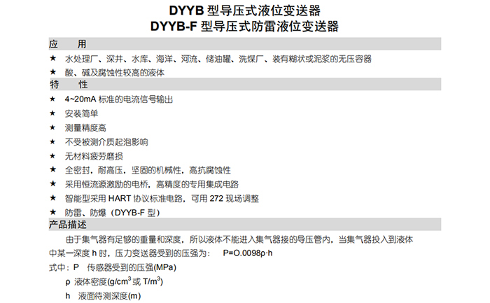 您現在的位置:首頁  > 產品展示  > DYYB型導壓式/DYYB-F型導壓式防雷液位變送器