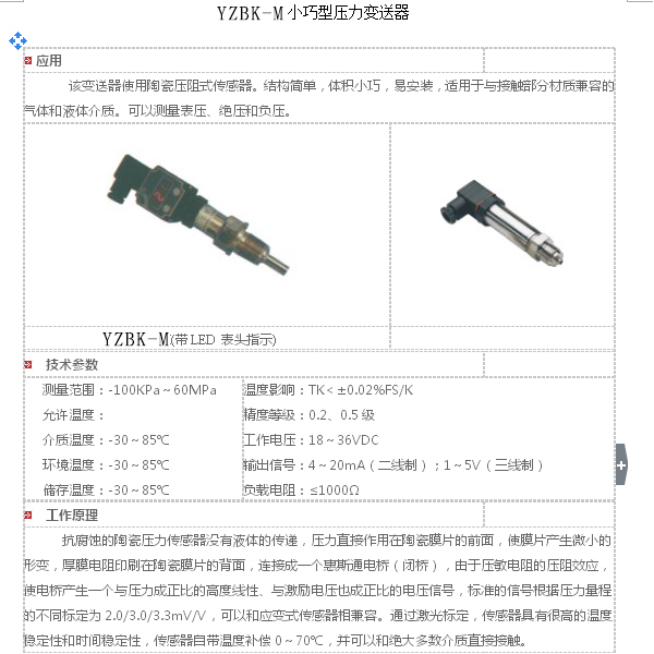 YZBK-M型壓力變送器